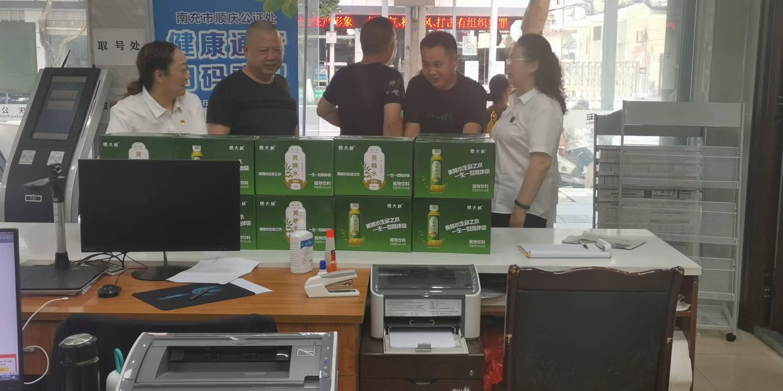 6月29日,四川省南充市順慶公證處收到了若干箱防暑飲品及一面印有“企業的貼心人,公平正義的人民衛士”的錦旗,這是一家電力工程有限責任公司的負責人孫先生特意送到公證處,以感謝公證人員熱心服務,公正辦案,同時在炎熱的夏日,真切的讓工作人員感受到了清涼。 南充順慶:公證為民暖人心贈送錦旗表謝意